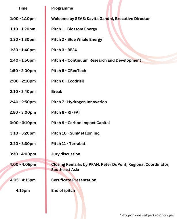 iPitch @ ACES, is an investor pitching event, organised by SEAS’ Sustainable Energy Start-Up Network (SESUN), in partnership with the Private Financing Advisory Network (PFAN) and ERI@N-ECOI. Start-ups will be invited to pitch to venture capitalists and investors using a ‘speed dating’ approach: each start-up will have 5 minutes to give their best pitch to the investors followed by another 5 minutes Q&A by the investors.